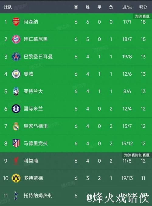 欧冠第6轮结束了所有比赛,最新积分榜如下!